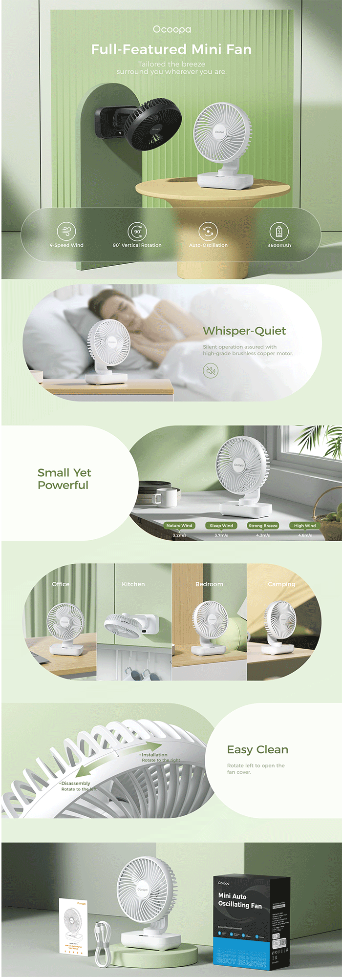 • Product description: This smart desktop fan integrates wireless connectivity and convenient control. It supports Bluetooth connection and remote operation via a dedicated smartphone app, allowing you to adjust fan speed, set timers for automatic on/off, and monitor its operational status in real time. Featuring three wind speed levels, it caters to various cooling needs. Designed with a low-noise motor and multi-angle oscillation, it ensures both quiet operation and wide-area airflow. The built-in long-lasting lithium battery can be conveniently charged via the Type-C port. Its lightweight yet sturdy ABS construction, coupled with multiple circuit protection features, guarantees safe and durable use—making it an ideal choice for study, office, and home environments.