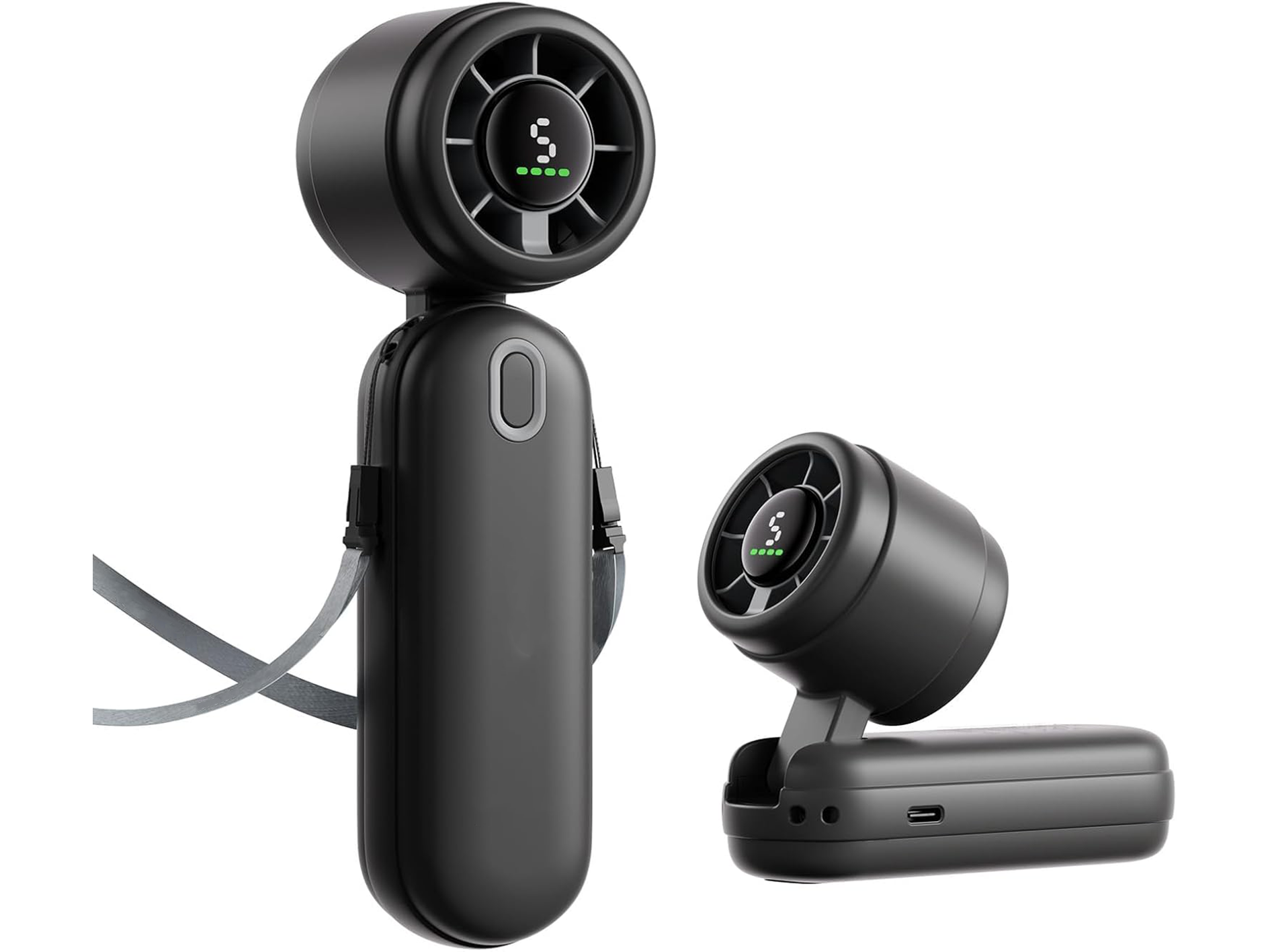 Handheld, hands-free, lanyard, or desk fan. Perfect for travel, outdoor adventures, and everyday use.Whether you need a gentle breeze or a strong wind, you can find the perfect cooling level to meet your needs. Its modern, ergonomic design provides a comfortable grip and a stylish look, fitting any lifestyle. The coolest gift of the summer: a must-have for fashion, practicality, work, travel, and outdoor entertainment. This mini fan is popular with men, women, and children, making it the perfect summer gift.
